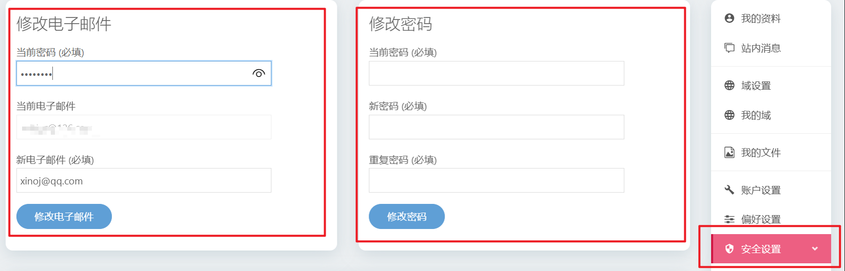 邮箱地址用户忘记密码时重置密码使用,请及时更改您的邮箱地址
