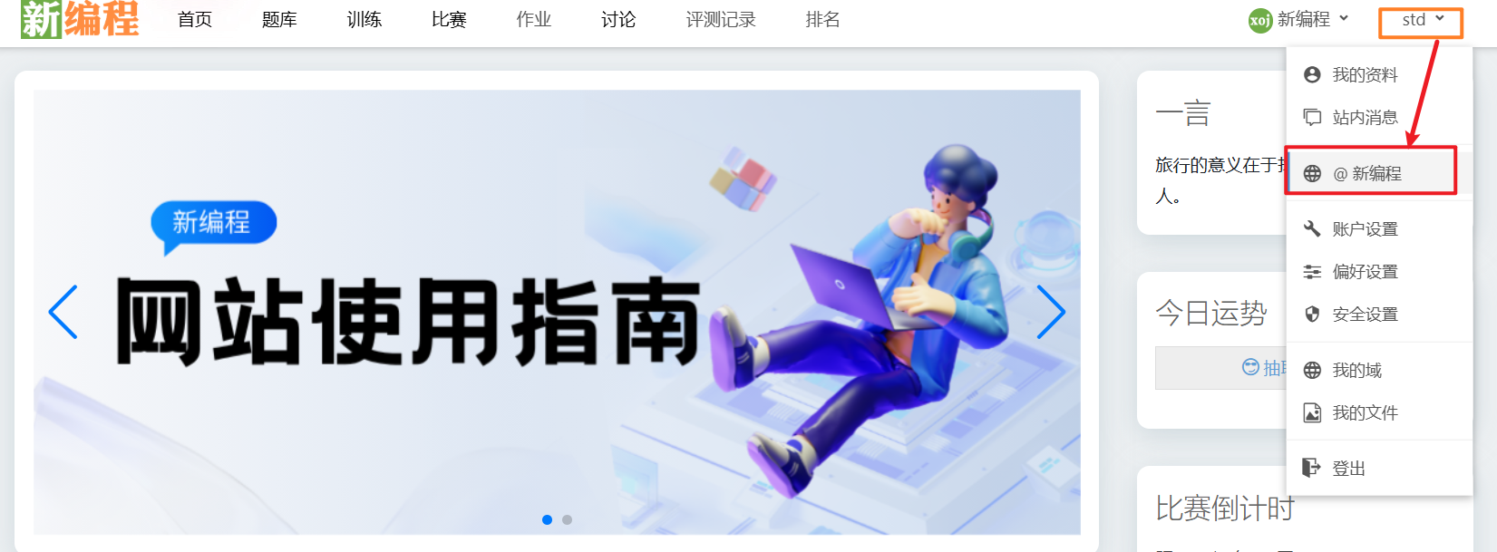 1. 请点击右上角用户下拉列表,点击“@新编程”按钮
